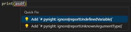 basedpyright also re-implements pylance's code actions for adding # pyright: ignore comments: